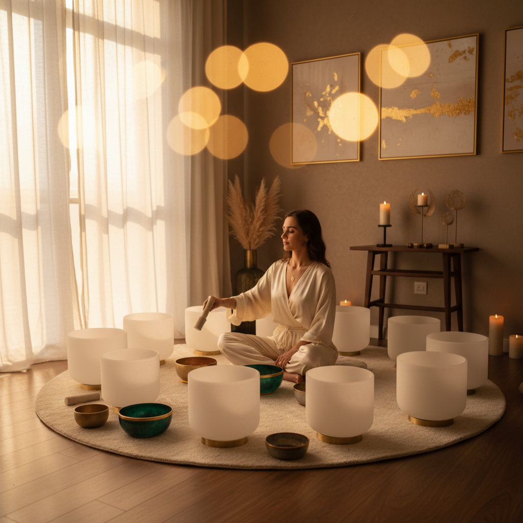 تخيلِ صوت الأوعية الكريستالية الغنائية التي تصدر رنينًا نقيًا يتراقص عبر الغرفة، أو ضربات الغونغ العميق التي تخلق موجات اهتزازية قوية. هذه الأصوات ليست مجرد موسيقى؛ إنها ترددات محسوبة بدقة تتفاعل مع الجسم. يشعر العديد من العملاء بالاهتزازات على المستوى الخلوي، وكأنها تدليك داخلي لطيف يعيد ضبط نظامهم.