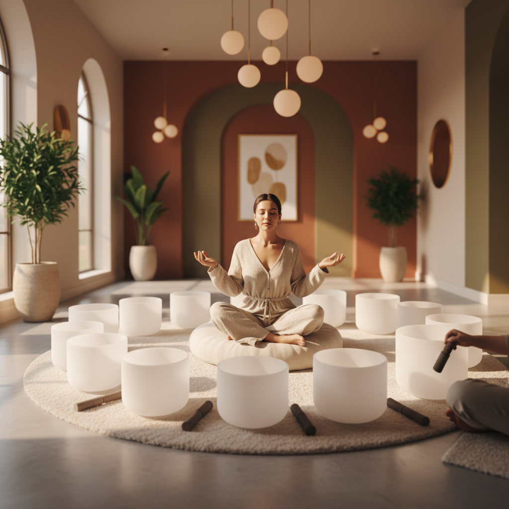 ما يجعل منهجية سول آرت فريدة حقًا هو الاستخدام المتعمد والماهر للأصوات. ليست الأصوات مجرد خلفية مريحة، بل هي جزء لا يتجزأ من الممارسة، مصممة بعناية لتتناغم مع إيقاع التنفس المتماسك. نحن نستخدم مجموعة متنوعة من الآلات، مثل الأوعية التبتية الغنائية، والغونغات، والآلات الإيقاعية اللطيفة، التي تنتج ترددات رنانة تؤثر على الجسم على المستوى الخلوي.