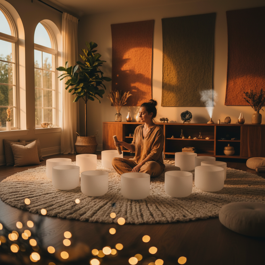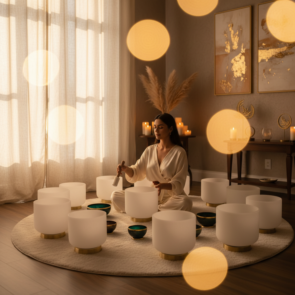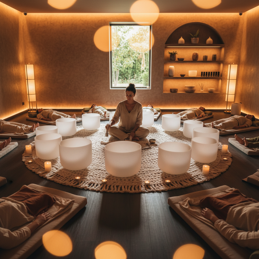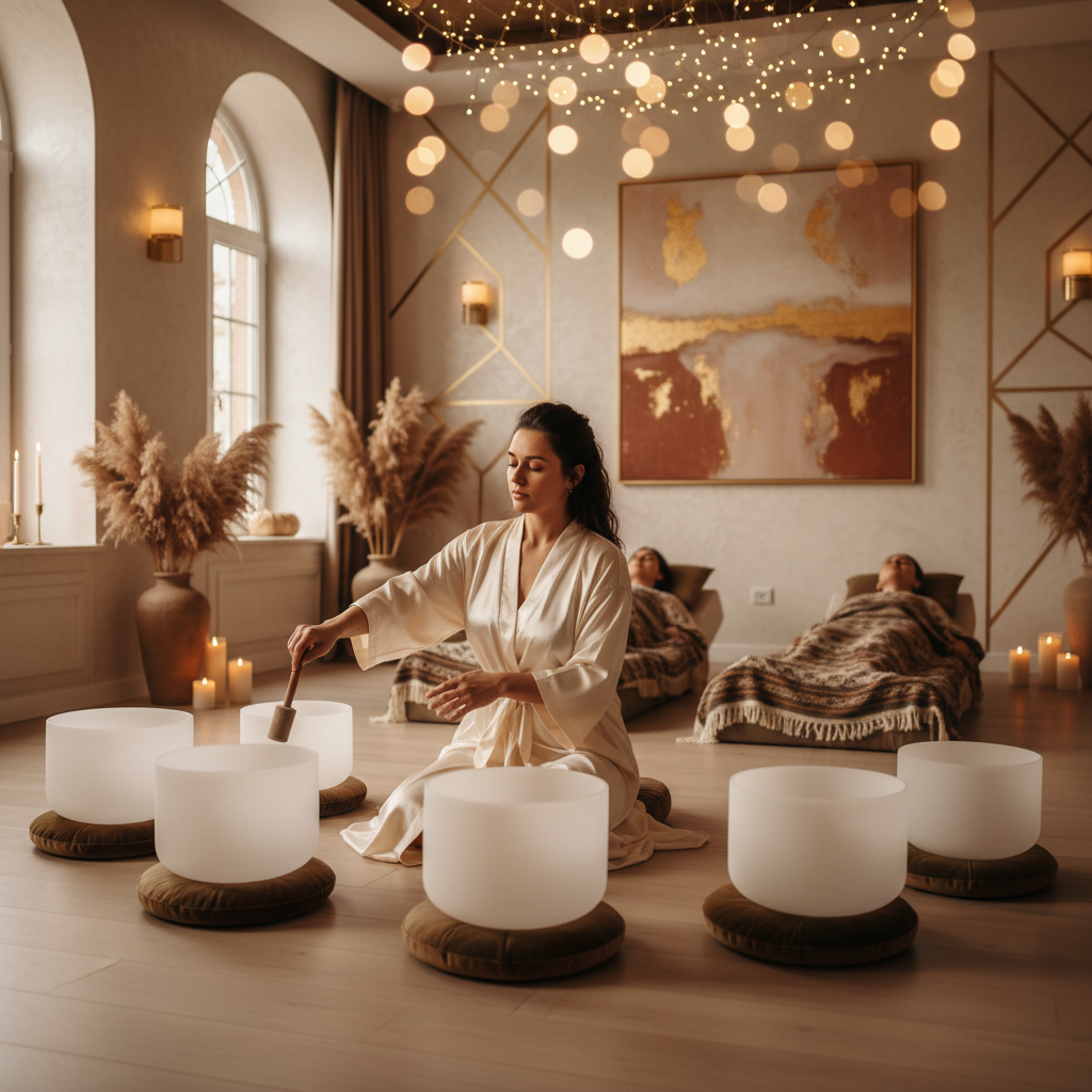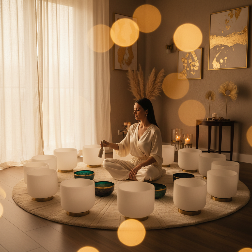 - أوعية الغناء الكريستالية والتبتية: تنتج هذه الأوعية ترددات اهتزازية عالية تتناغم مع الجسم والعقل.