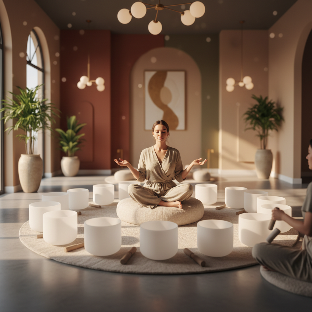 في الممارسة العملية، يبدأ هذا التكامل غالبًا بلحظة هادئة عند الفجر. بعد الاستيقاظ في "براهما موهورتا" – الوقت المقدس قبل شروق الشمس – يمكنك تخصيص بضع دقائق للتأمل الصامت، ثم الانتقال إلى جلسة صوتية قصيرة وموجهة. قد تشمل هذه الجلسة الاستماع إلى أوعية الغناء الهيمالايانية أو الكريستالية، أو الأجراس، أو الشوكات الرنانة. لا تقتصر التجربة على السمع فحسب؛ بل تشمل الشعور بالاهتزازات التي تخترق جسمك، مما يطلق التوتر العميق ويحفز حالة من الاسترخاء العميق.