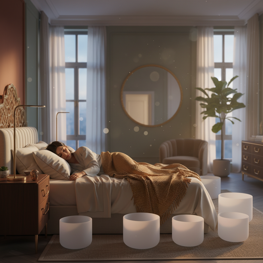 - جلسات حمام الصوت العلاجية: حيث تخلق الأوعية الغنائية الكريستالية، والجونغات، والآلات الأخرى اهتزازات ترددية تغمر الجسم. هذه الترددات يمكن أن تساعد في إبطاء موجات الدماغ، مما يسهل الانتقال إلى مراحل النوم العميق والاسترخاء.