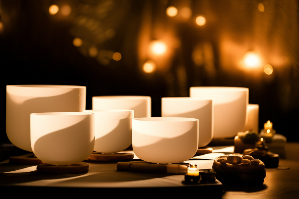 تستخدم جلساتنا أدوات مثل الأوعية الغنائية الكريستالية، والأجراس الدقيقة، والجولنجات التي تنتج اهتزازات وت ترددات رنانة بلطف. هذه الأصوات مصممة لتوفير تجربة سمعية غنية ولكنها ليست ساحقة. إنها تساعد في تهيئة الأذن والدماغ لاستقبال ومعالجة المعلومات الصوتية بطريقة منظمة ومريحة.