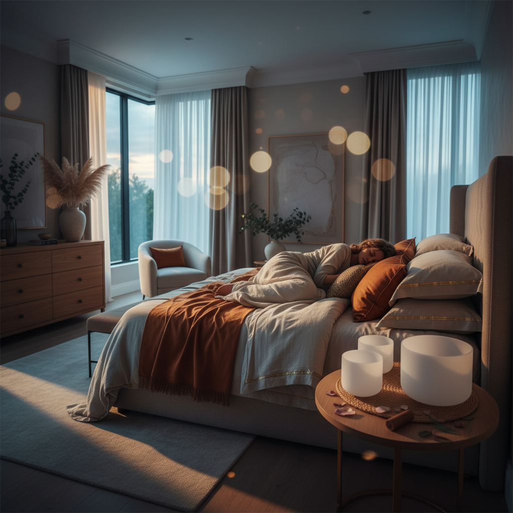 نؤمن بأن البيئة والتقنيات المناسبة يمكن أن تعمل كعوامل مساعدة قوية لتحقيق نوم أعمق وأكثر ترميمًا. يتميز منهج سول آرت بتصميم تجارب عافية صوتية مخصصة، تستخدم ترددات واهتزازات معينة قد تساعد في تهيئة الدماغ للانتقال إلى حالة الموجات الدماغية البطيئة المرتبطة بالنوم العميق.