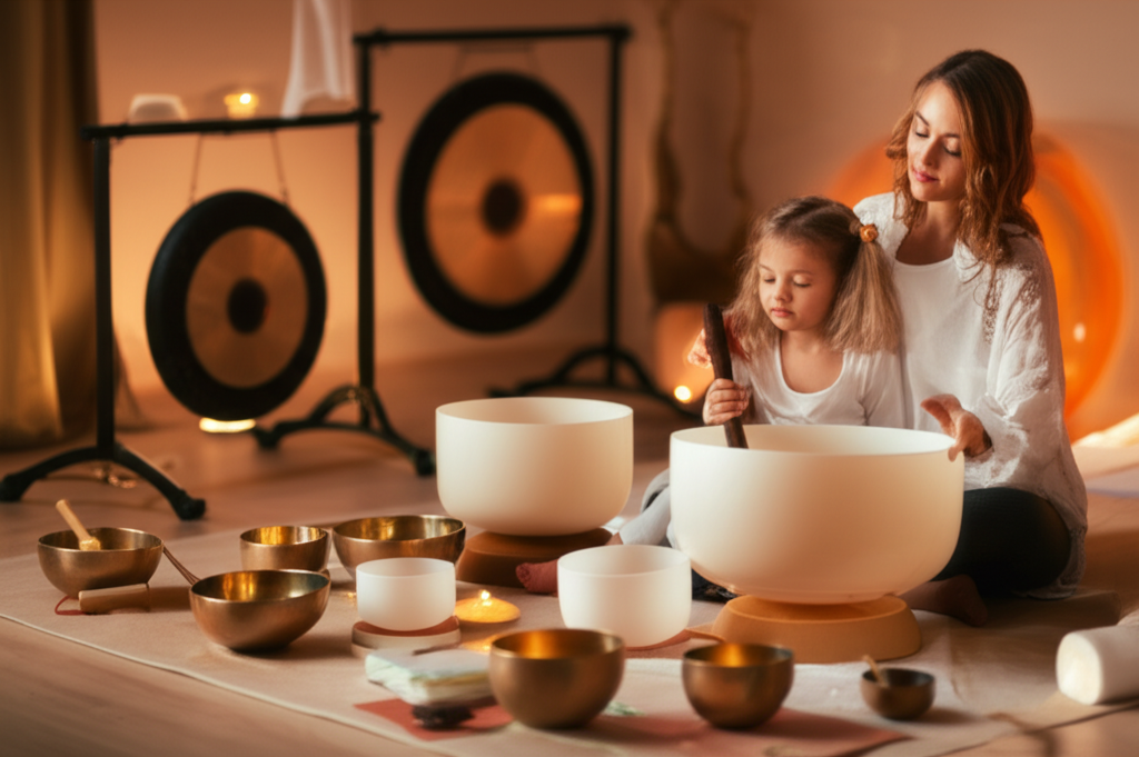 Während einer Klang-Wellness-Sitzung tauchen Kinder in ein Bad aus harmonischen Tönen und Vibrationen ein. Dies geschieht oft durch den Einsatz von Klangschalen, Gongs, Stimmgabeln und anderen resonanten Instrumenten. Die sanften Frequenzen durchdringen den Körper und können Spannungen lösen, die sich oft unbewusst bei trauernden Kindern ansammeln.