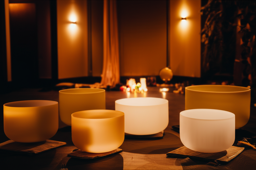 - Kristallklangschalen: Aus reinem Quarz gefertigt, erzeugen sie klare, durchdringende Töne, die oft mit höheren Frequenzen und einer Öffnung des Geistes assoziiert werden.