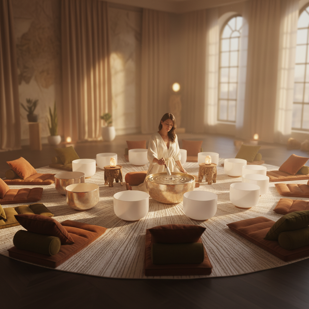 - Klangschalen: Diese alten Instrumente erzeugen tiefe, langanhaltende Töne und Vibrationen, die in den Körper eindringen und eine zelluläre Entspannung fördern können. Die Frequenzen können helfen, Gehirnwellenmuster in Theta- oder Delta-Zustände zu versetzen, die mit tiefer Entspannung und Meditation assoziiert sind.