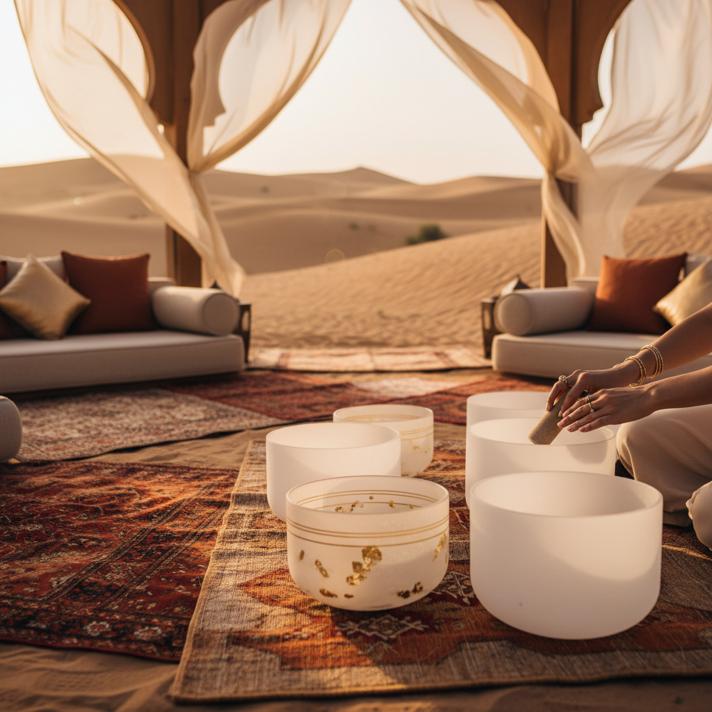 - Kristallklangschalen: Ihre reinen, klaren Töne und anhaltenden Schwingungen werden oft als klärend und beruhigend erlebt, wodurch ein Zustand der mentalen Ruhe gefördert werden kann.