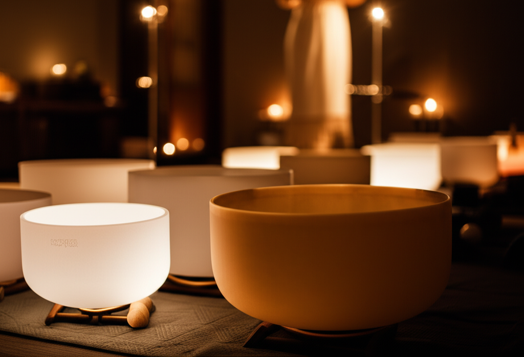 - Gongs: The powerful, enveloping vibrations of gongs are employed for deep relaxation and nervous system reset. Their complex overtone spectrum can help release deeply held tension and guide the brain into restorative states.