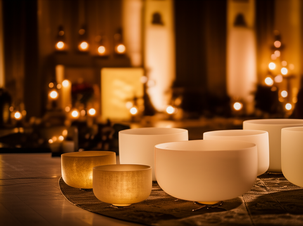 - Harmonic Resonance: Sessions often feature instruments such as Himalayan singing bowls, crystal singing bowls, gongs, chimes, and tuning forks. These instruments produce rich overtones and deep vibrations that are not just heard but felt throughout the body. The sustained, pure tones are designed to create a resonant field that encourages brainwave entrainment towards alpha and theta states, conducive to deep relaxation and meditation.