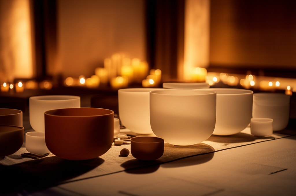 Coupled with these sophisticated lighting environments are curated soundscapes that define the Soul Art experience. Larissa carefully selects and often personally conducts sessions using a diverse array of therapeutic instruments, including Himalayan singing bowls, crystal singing bowls, gongs, chimes, and other resonant tools. The frequencies and vibrations generated by these instruments are chosen for their specific ability to induce deep relaxation, quiet the mind, and shift brainwave states, preparing the body for optimal rest or enhancing focus as needed.