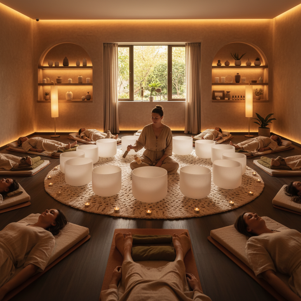 - Large Symphonic Gongs: Produce a wide spectrum of low-frequency vibrations that create a "sound massage" for the entire body.