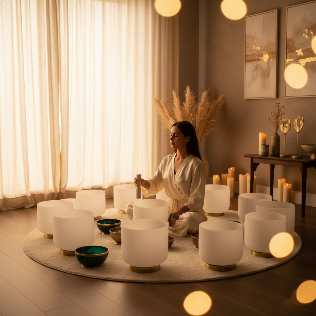 - Gongs: Generating expansive, complex sound waves that encourage a meditative state.