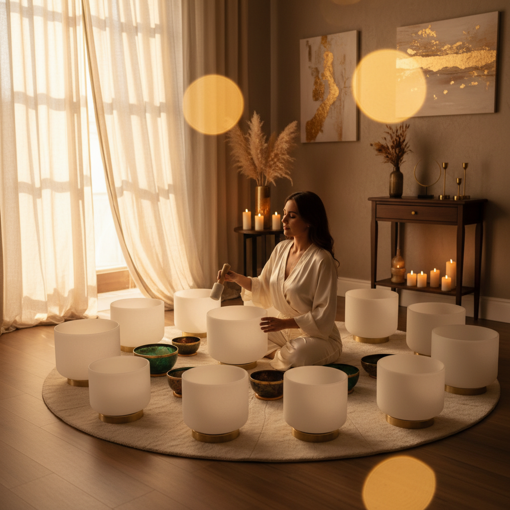 We utilize a diverse array of resonant instruments, including meticulously crafted Tibetan singing bowls, ethereal crystal bowls, and powerful gongs. Each instrument is chosen for its specific frequency and ability to induce deep meditative states. The gentle vibrations permeate the body, releasing physical and emotional blockages, and soothing the nervous system. Larissa Steinbach curates each sound journey with intention, guiding participants towards states of profound relaxation, emotional release, and energetic rebalancing. Our studios in Dubai offer a luxurious yet grounding atmosphere, where every detail is designed to enhance the restorative experience.